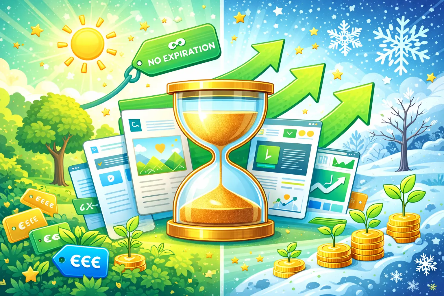 De kracht van evergreen content zit in de samengestelde waarde ervan. Een goed geschreven evergreen artikel kan jarenlang in de top van Google staan en dagelijks bezoekers sturen naar je website — zonder dat je er extra geld of energie in stopt.